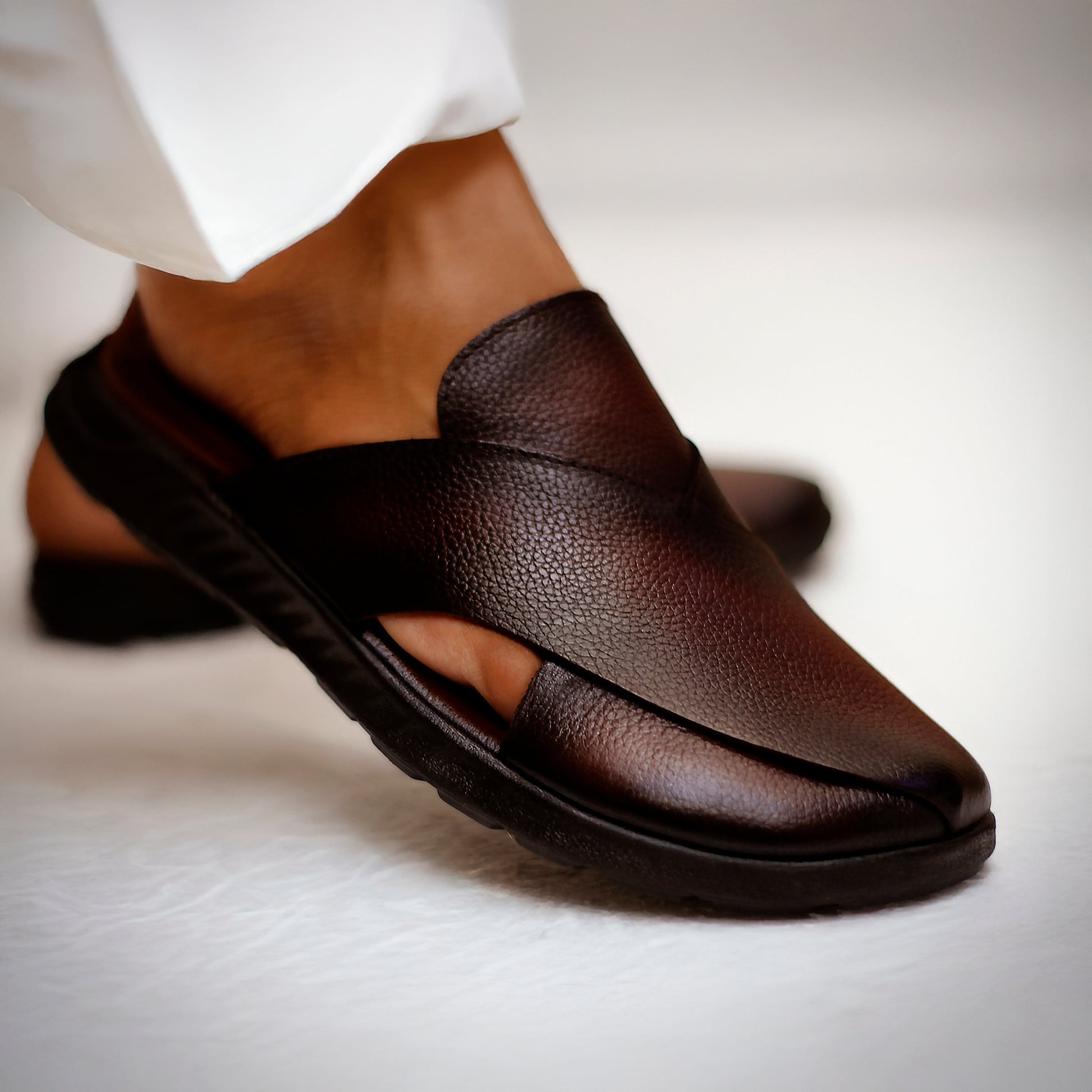 Crafted from premium cow leather, this dark brown mule features a shaded texture that adds depth and character. Its breathable design ensures comfort throughout long wear, making it ideal for all-day use. The expert construction balances durability with style, providing a sophisticated yet practical footwear option.
